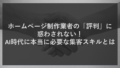 問い合わせの際、最も深掘りして聞いていただきたいのが「AI活用」についてです。なぜなら、これが契約後の「運用の楽さ」と「集客成果」を決定づけるからです。